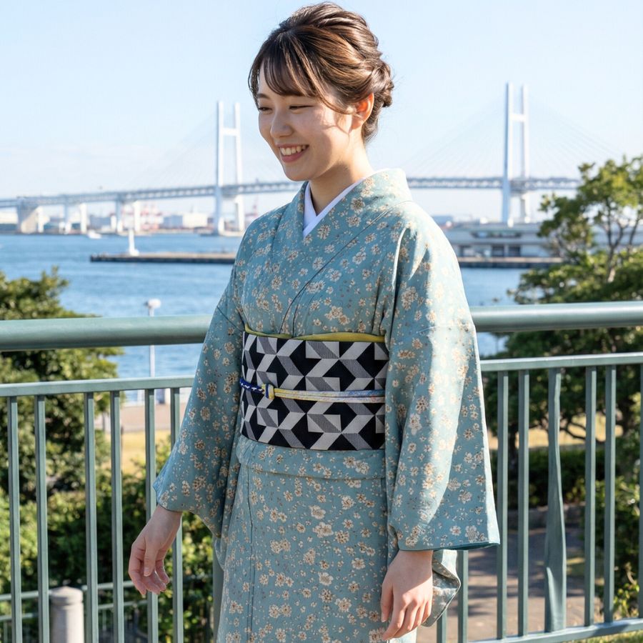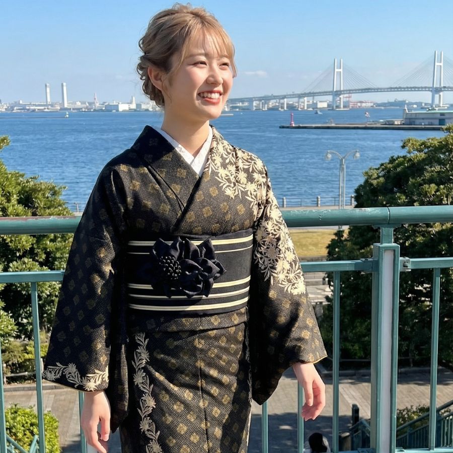 요코하마 항구를 한눈에 볼 수 있는 대표적인 공원. 바다와 하늘이 펼쳐지는 탁 트인 풍경 속에서 기모노가 빛납니다. 공원 내 로즈가든도 인기 촬영 스팟.